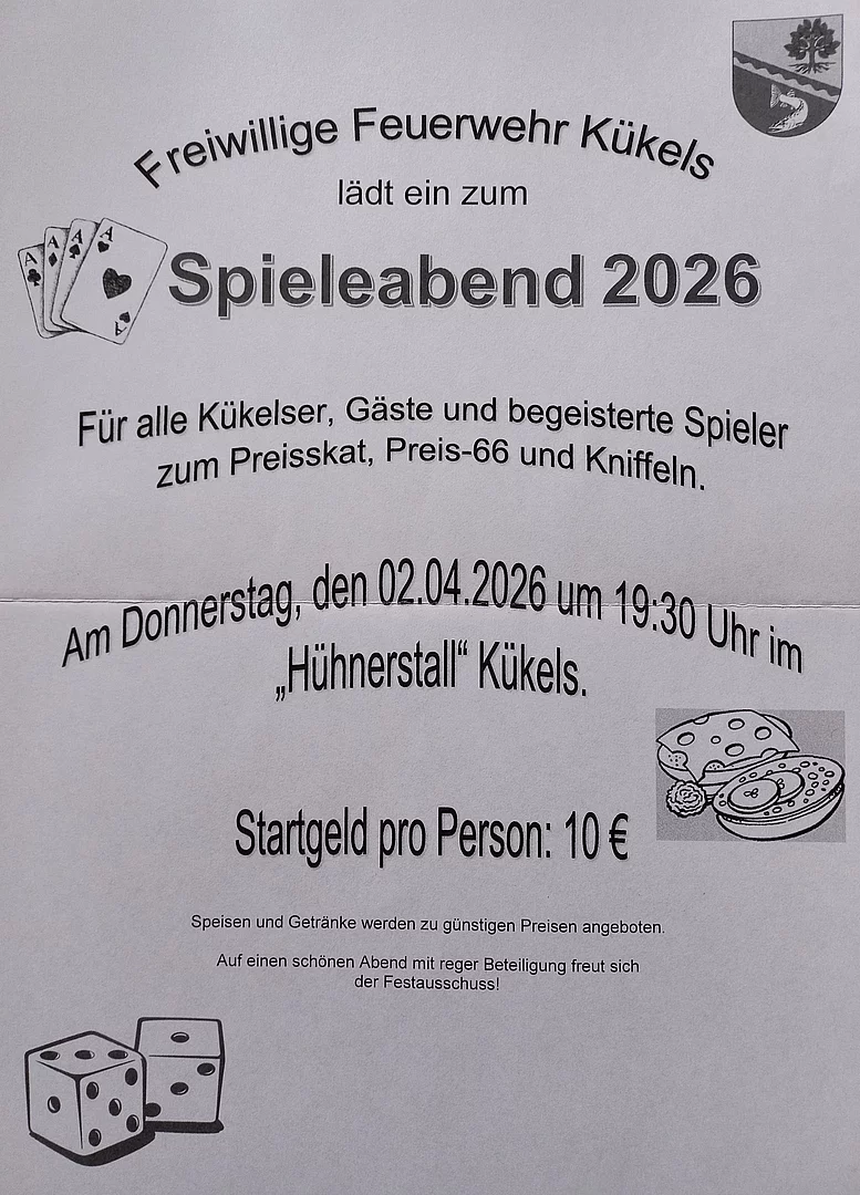 Hierzu lädt die FFW Kükels ganz herzlich ein: