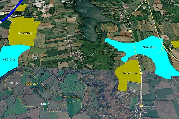 Die hellblau markierten Flächen sind aktuell von der Regionalplanung als potenzielle Vorrangflächen deklariert.