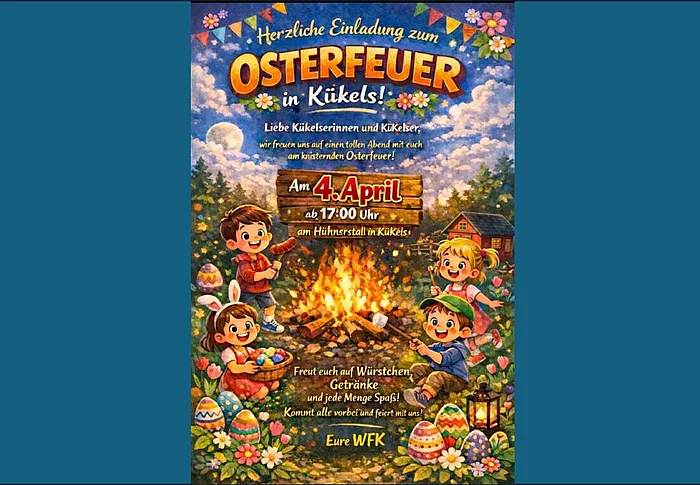 Osterfeuer in Kükels, am 4. April ab 17:00 Uhr am und im Hühnerstall.