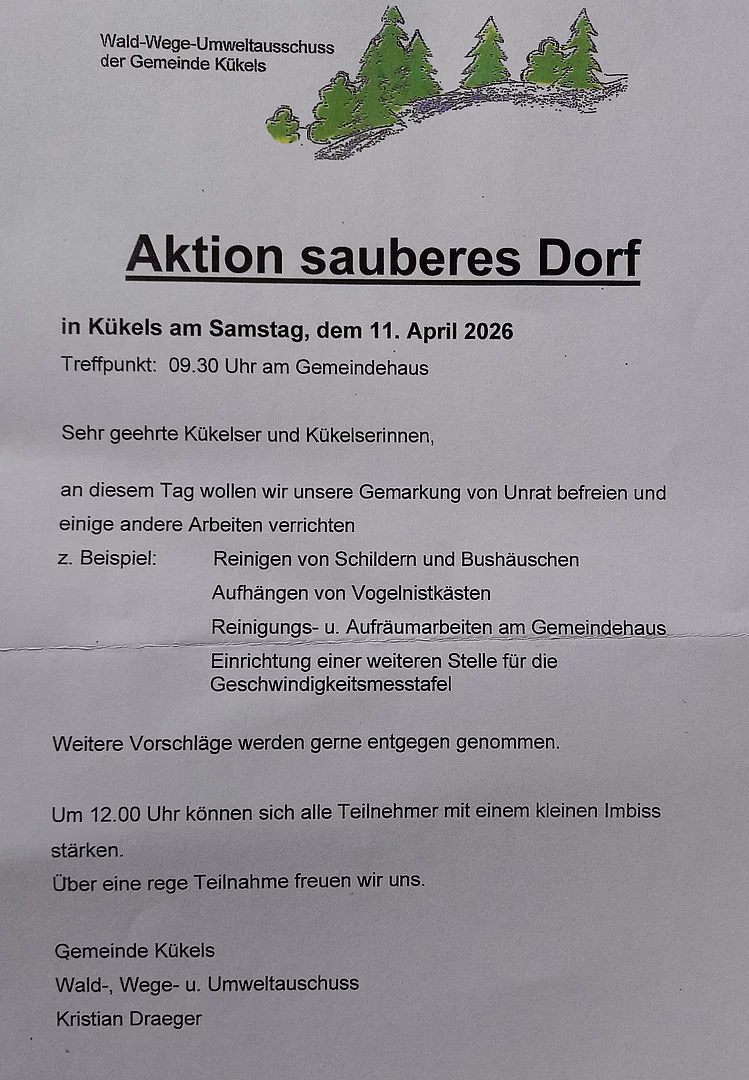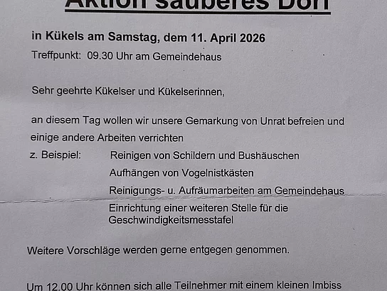 Daher laden wir Euch herzlich zur Aktion “Sauberes Dorf” ein.