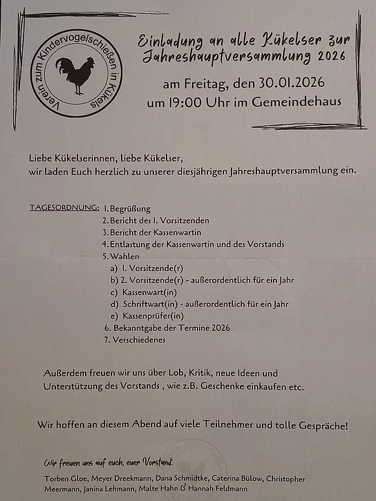 Der Verein lädt alle herzlich zur diesjährigen Jahreshauptversammlung ein.